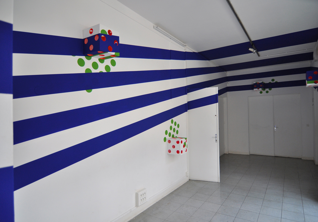 Peinture murale acrylique et cubes en bois de 30x30x30cm