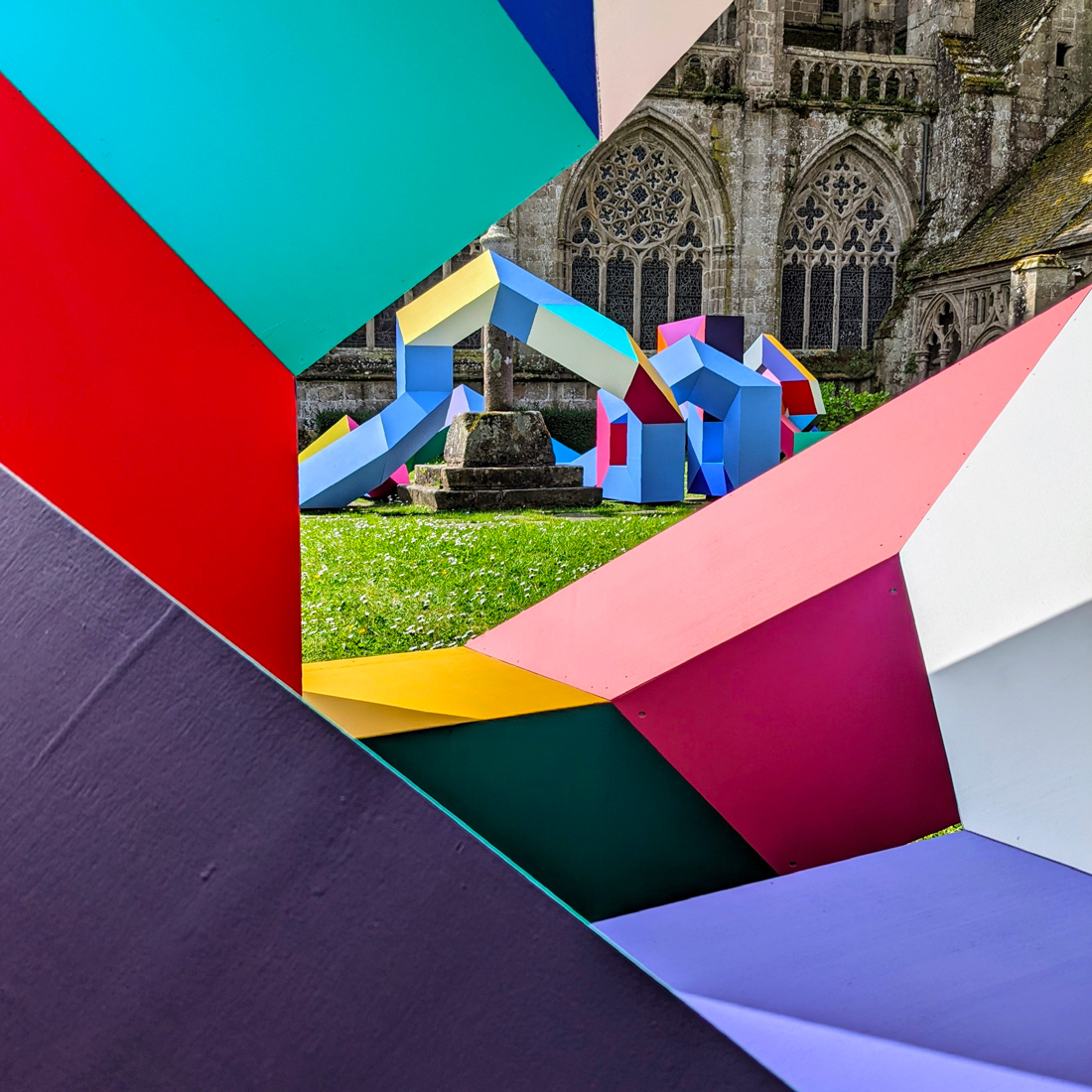 (±) PLUS OU MOINS // Cloître de la ctahédrale - 2024 // Tréguier Acrylic paint on wood // variables dimensions
